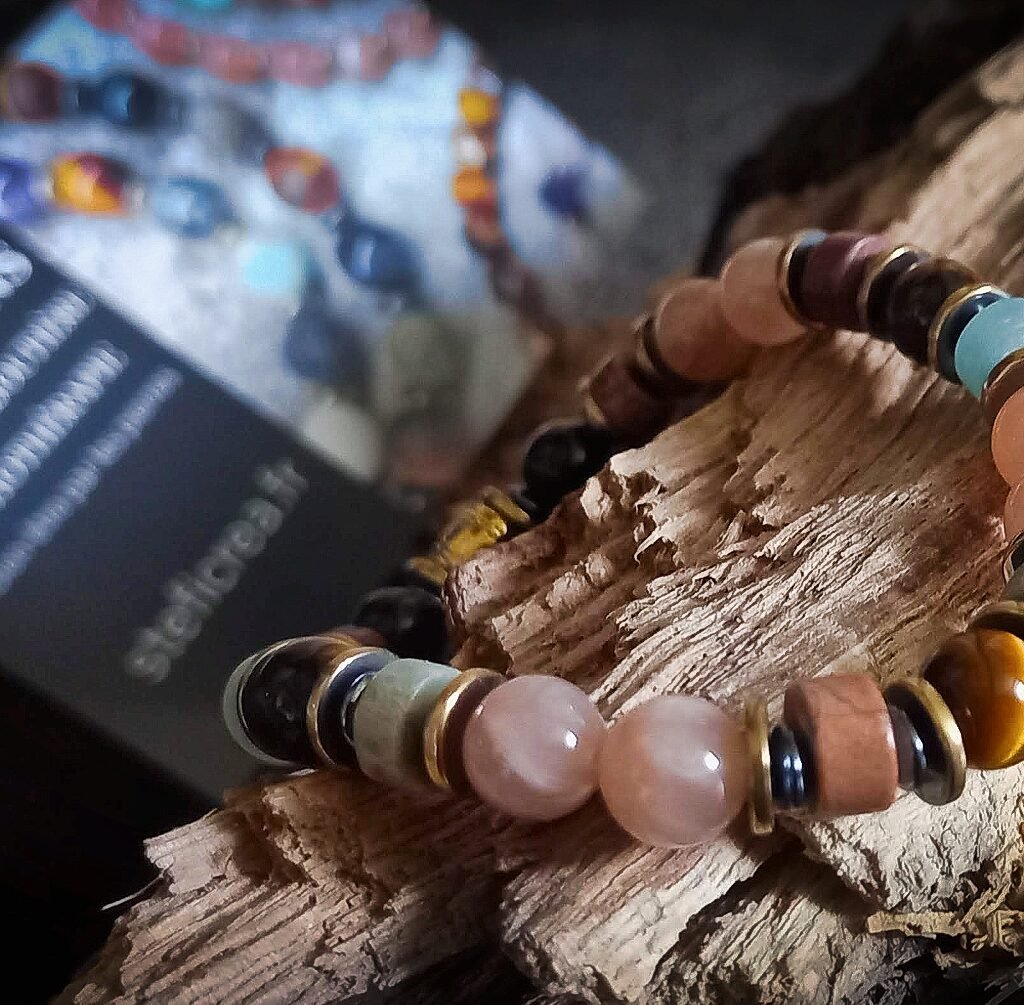 Ce bracelet combine les propriétés uniques de chaque pierre et l’éclat de l’or :